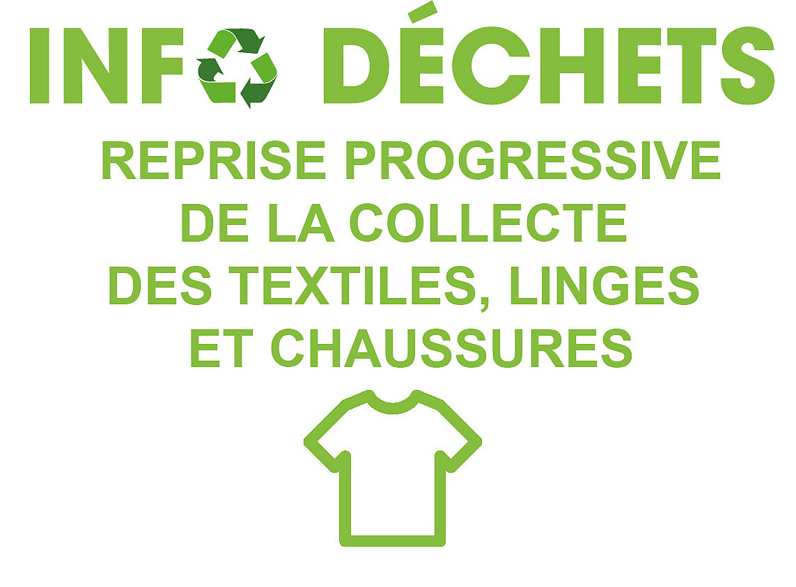 Reprise progressive des collectes de déchets textiles. Merci de ne pas déposer si les bornes sont pleines. Ne rien laisser au sol.
