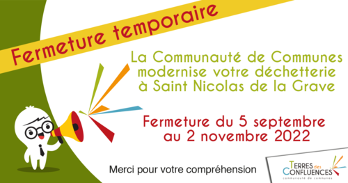 Fermeture de la déchetterie de St Nicolas de la Grave du 5 sept. au 1er nov. inclus.